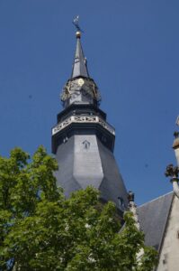 Nous continuons tout droit vers le Vismarkt (ancienne Place du Marché aux Poissons) et déjà le clocher de la Cathédrale Saint-Quentin, avec ses 62 m de haut, nous accroche ! Encore une noisette ! Nous sommes sur le bon chemin ! Et le carillon retentit ! Avec ses 47 cloches, depuis 1752, il est considéré comme le meilleur du pays ! Sa mélodie, « The Singing Tower » enveloppe le centre-ville de douceur. Nous prenons notre temps pour l’écouter et chacun a l’impression d’avoir quitté « les turbulences » de sa propre ville et d’être arrivé dans un havre de paix.