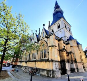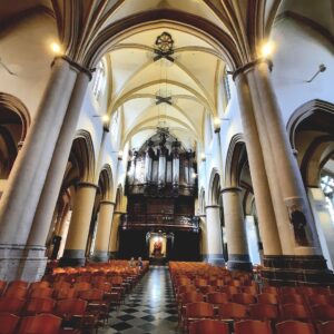 Nous continuons tout droit vers le Vismarkt (ancienne Place du Marché aux Poissons) et déjà le clocher de la Cathédrale Saint-Quentin, avec ses 62 m de haut, nous accroche ! Encore une noisette ! Nous sommes sur le bon chemin ! Et le carillon retentit ! Avec ses 47 cloches, depuis 1752, il est considéré comme le meilleur du pays ! Sa mélodie, « The Singing Tower » enveloppe le centre-ville de douceur. Nous prenons notre temps pour l’écouter et chacun a l’impression d’avoir quitté « les turbulences » de sa propre ville et d’être arrivé dans un havre de paix.