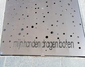 Ou, comme ce couple assis sur une des nombreuses banquettes de la place qui nous invite au repos : « Hallo, nous sommes Hendrik et Katrien, le légendaire premier couple d’habitants. C’est le sculpteur hasseltois Marc Cox qui nous a donné la vie en 1989. En regardant au loin, vers le futur, nous symbolisons la jeunesse tournée vers l’avenir. Restez assis avec nous encore un moment pour écouter le carillon ! C’est d’ailleurs le nom donné à notre statue ».