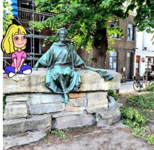 Et, à cet instant, le carillon nous envoie ses jolies notes de musique… Hasselt n’a pas fini de nous étonner et de nous séduire ! Quelqu’un me demande si c’est bien la statue qui nous a parlé ?