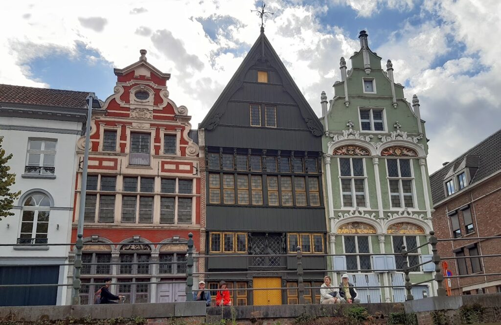 Dans l‘eau, se mirent les belles demeures flamandes avec leurs pignons de façades en gradins, les riches maisons des gildes et des corporations. Les ponts en briques nous obligent à courber l‘échine sous leur passage, le tirant d’air ne suffisant pas.